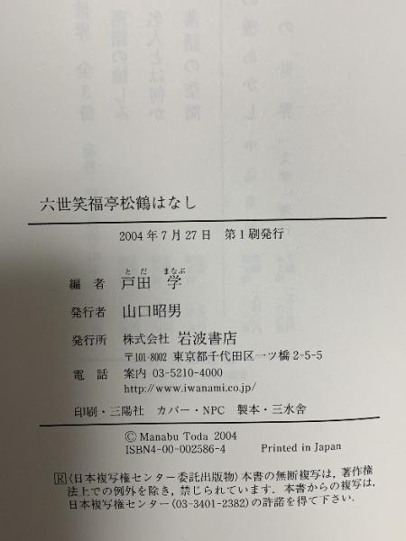 六世笑福亭松鶴はなし 岩波書店 戸田 学