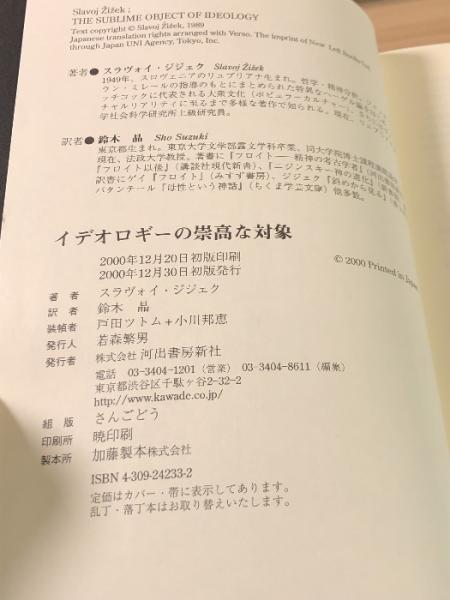 イデオロギーの崇高な対象 河出書房新社 ジジェク,スラヴォイ