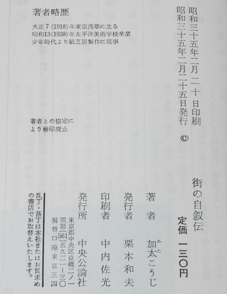 • 解説 加太こうじ 街の自叙伝 中央公論社 昭和35年2月発行 新書判帯付.