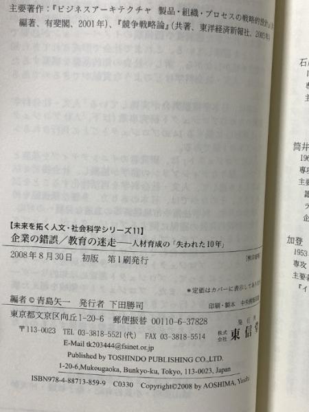 企業の錯誤/教育の迷走: 人材育成の「失われた10年」 (未来を拓く人文・社会科学シリーズ 11) 東信堂 青島 矢一