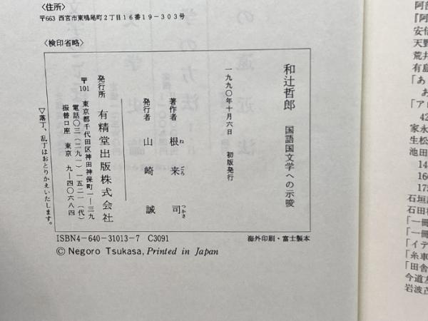 和辻哲郎―国語国文学への示唆 有精堂出版 根来 司