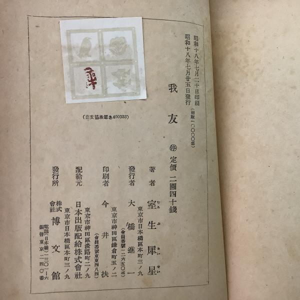 • 解説 昭和18年初版発行。カバーにヤブレあり。ほかにヤケ・シミ・イタミ等ある箇所があります。
