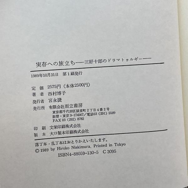 実存への旅立ち―三好十郎のドラマトゥルギー 而立書房 西村 博子