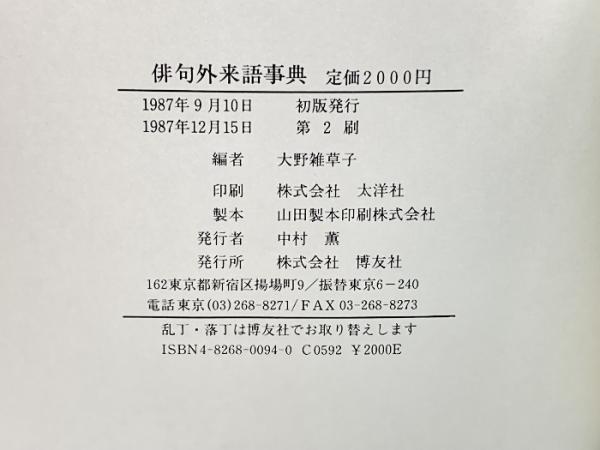 俳句外来語事典―外来語俳句を詠みこなすために 博友社 , 大野 雑草子