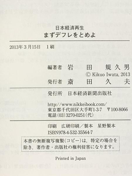 日本経済再生 まずデフレをとめよ 日本経済新聞出版 岩田 規久男