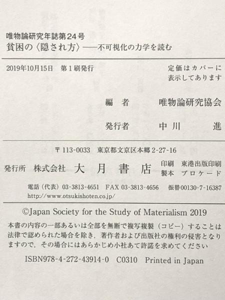 唯物論研究年誌第24号 貧困の〈隠され方〉 大月書店 唯物論研究協会