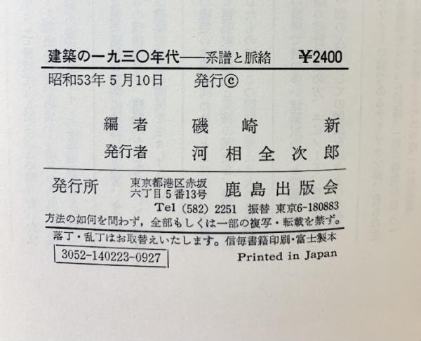 建築の一九三〇年代: 系譜と脈絡 鹿島出版会 磯崎 新