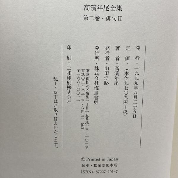 高浜年尾全集〈第2巻〉俳句(2) 梅里書房 高浜 年尾