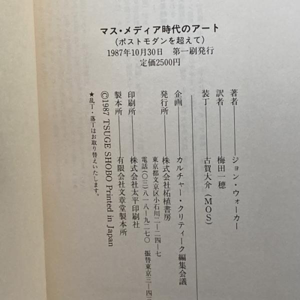 マス・メディア時代のアート―ポスト・モダンを超えて (カルチャー・クリティーク・ブックス) 柘植書房新社 ジョン A.ウォーカー