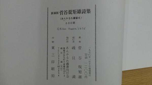 新装版 菅谷規矩雄詩集 〈あんかるわ選習4〉 600部