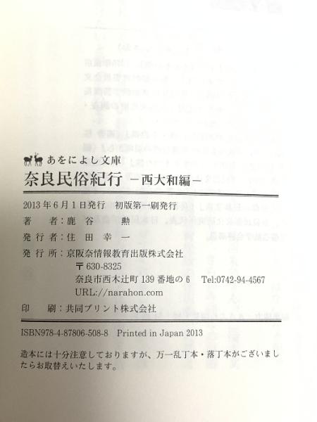 奈良民俗紀行 西大和編 (あをによし文庫) 京阪奈情報教育出版 鹿谷 勲