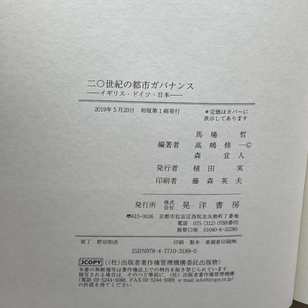 二〇世紀の都市ガバナンス―イギリス・ドイツ・日本― 晃洋書房 馬場 哲