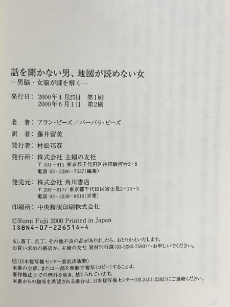 話を聞かない男、地図が読めない女 男脳・女脳が「謎」を解く 主婦の友社 アラン・ピーズ
