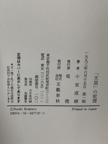 天皇の原理 文藝春秋 小室 直樹