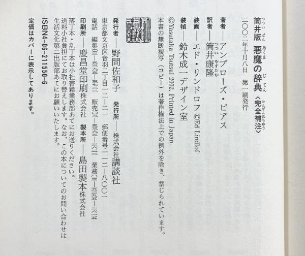 筒井版 悪魔の辞典 講談社 アンブローズ ビアス