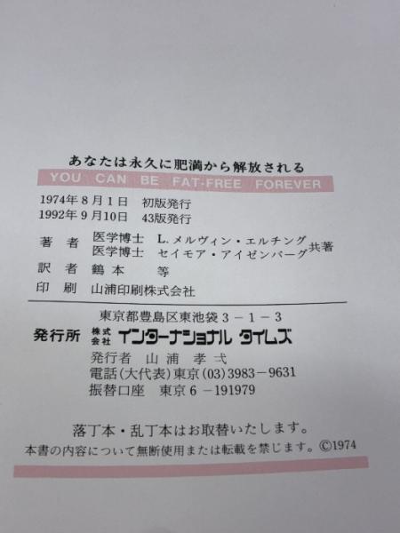 あなたは永久に肥満から解放される インターナショナルタイムス L.M.メルチング・S.アイゼンバーグ