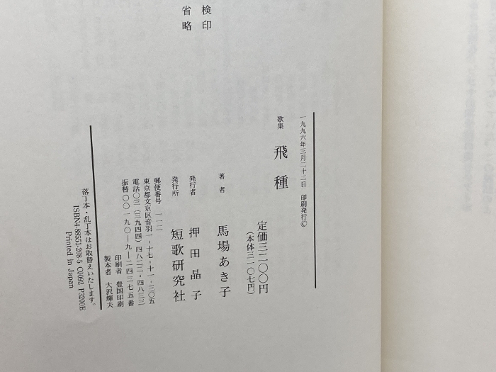 飛種: 歌集 短歌研究社 馬場 あき子