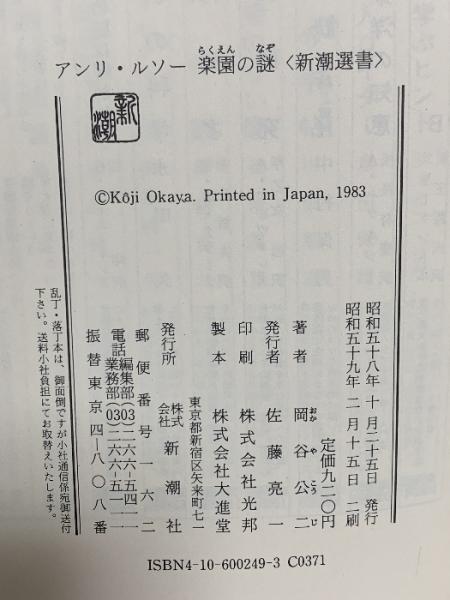 アンリ・ルソー楽園の謎 (新潮選書) 新潮社 岡谷 公二