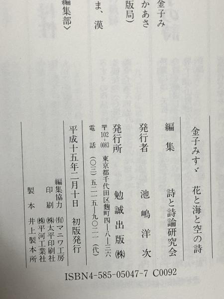 金子みすゞ花と海と空の詩 勉誠社(勉誠出版) 詩と詩論研究会