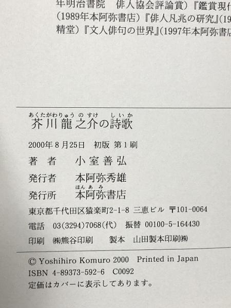 芥川龍之介の詩歌 本阿弥書店 小室 善弘