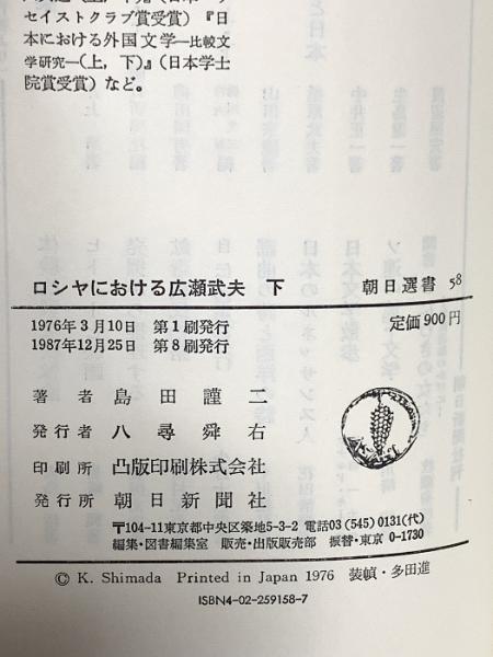 ロシヤにおける広瀬武夫 下 (朝日選書 58) 朝日新聞出版 島田 謹二