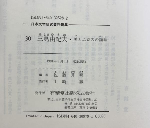 三島由紀夫・美とエロスの論理 (日本文学研究資料新集 30) 有精堂出版 佐藤 秀明