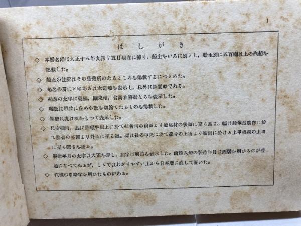 大正十五年版 船主別 日本船名録【日本舩名録】 海商社編 東邦書院