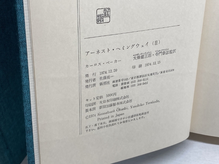 アーネスト・ヘミングウェイ (1974年) (全二冊) カーロス・ベーカー 新潮社