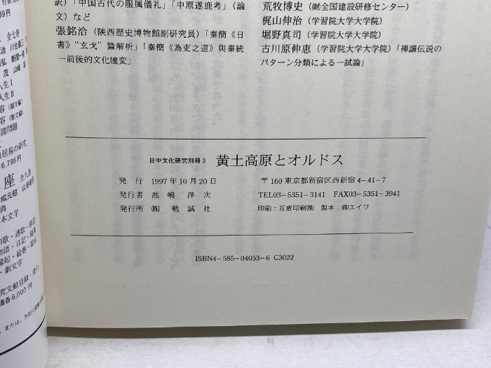 黄土高原とオルドス: 中国西北路寧夏・陜北調査記 (日中文化研究 別冊 3) 勉誠社(勉誠出版) 周 天游