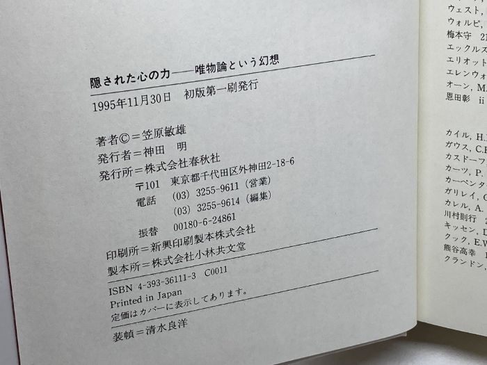 隠された心の力: 唯物論という幻想 春秋社 笠原 敏雄