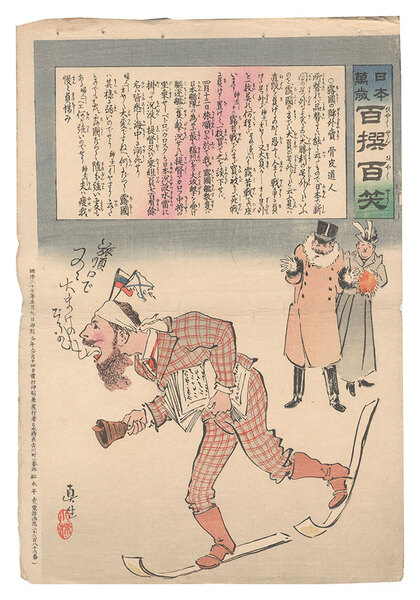 日本万歳百撰百笑 露国の号外売 骨皮道人 Hurrah for Japan! One Hundred Victories, One Hundred Laughs