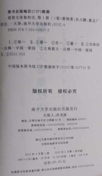 梁簡文帝集校注 第1冊