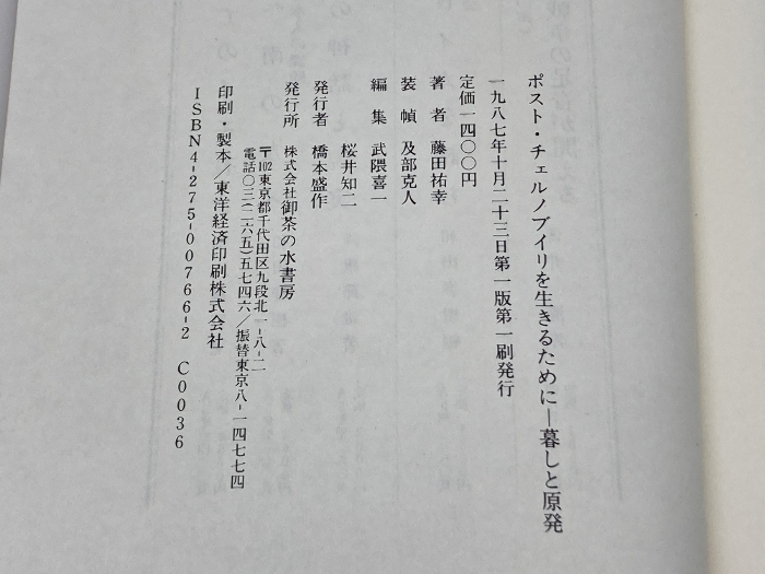 ポスト・チェルノブイリを生きるために: 暮しと原発 御茶の水書房 藤田 祐幸