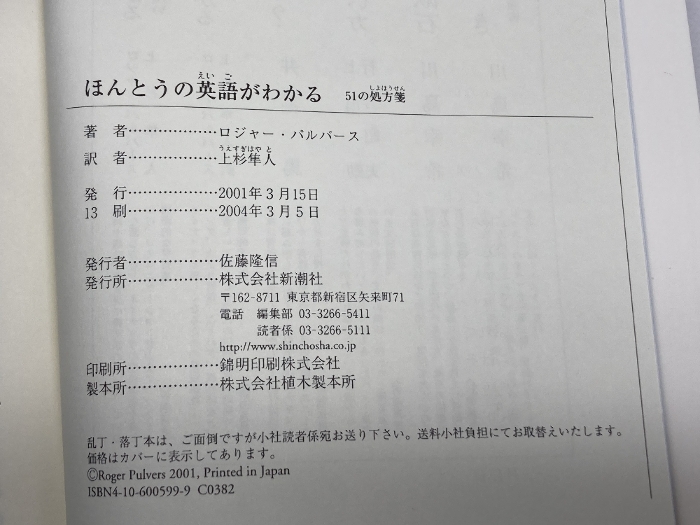 ほんとうの英語がわかる (新潮選書) 新潮社 ロジャー・パルバース