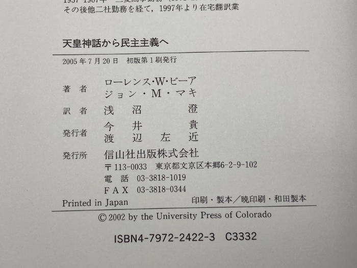 天皇神話から民主主義へ: 日本の二つの憲法1889~2004年 信山社 ローレンス W.ビーア