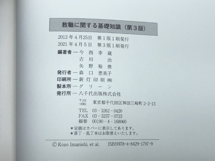 教職に関する基礎知識(第3版) 八千代出版 今西 幸蔵