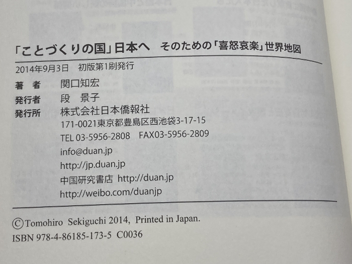 「ことづくりの国」日本へ――そのための「喜怒哀楽」世界地図 日本僑報社 関口知宏
