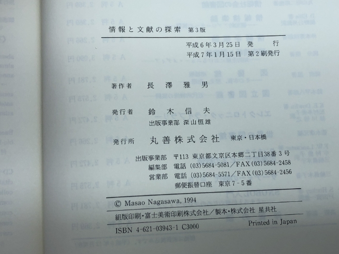 情報と文献の探索 第3版 丸善出版 長澤 雅男