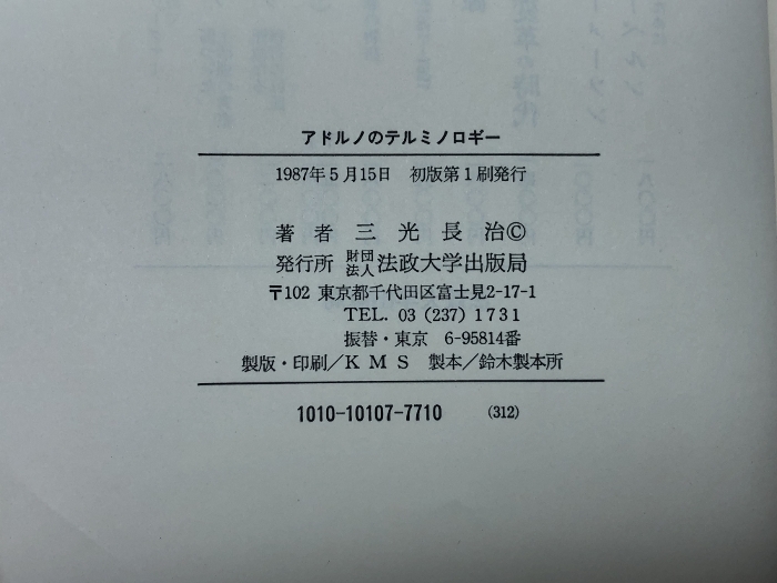アドルノのテルミノロギー 法政大学出版局 三光 長治