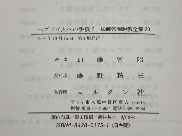 ヘブライ人への手紙2 (加藤常昭説教全集 20) ヨルダン社 加藤常昭 ヨルダン社 加藤常昭