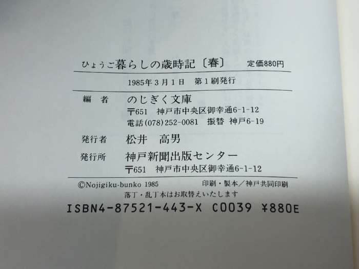 ひょうご暮らしの歳時記 春 (のじぎく文庫) 神戸新聞総合印刷 のじぎく文庫