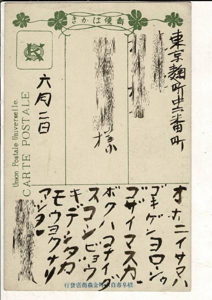 岐阜長良川鵜飼真景 レトロ絵葉書 宛名面書き込み