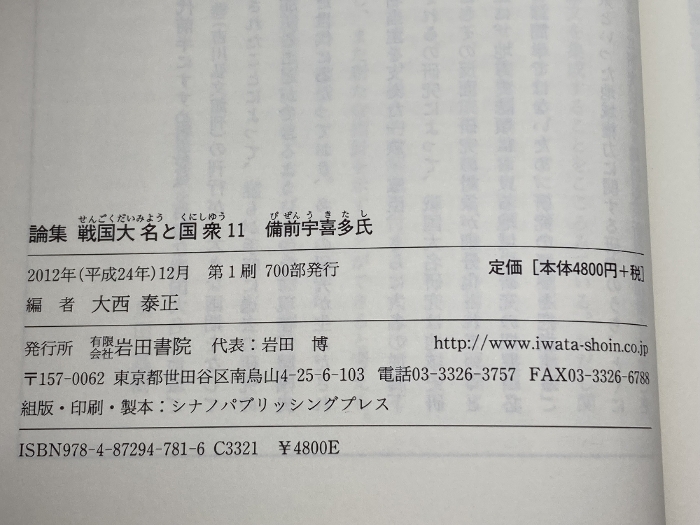備前宇喜多氏 (論集戦国大名と国衆 11) 岩田書院 大西 泰正