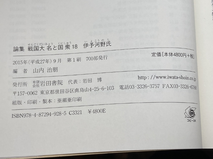 伊予河野氏 (論集戦国大名と国衆 18) 岩田書院 山内 治朋