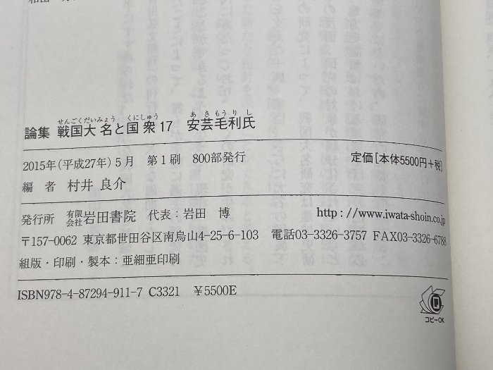 安芸毛利氏 (論集戦国大名と国衆 17) 岩田書院 村井 良介
