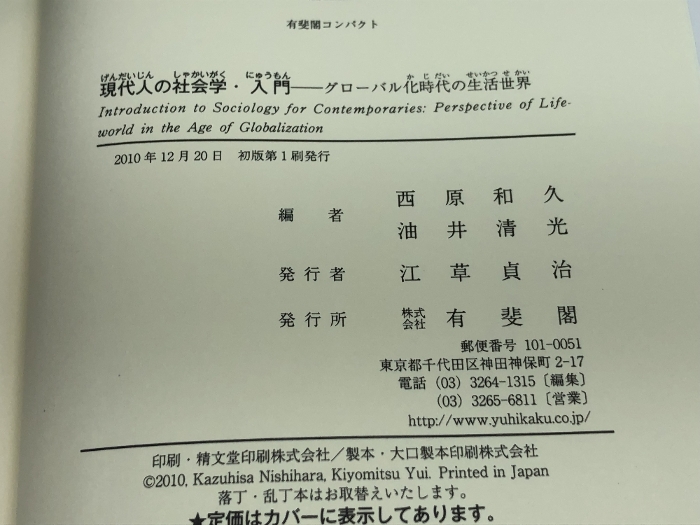 現代人の社会学・入門 -グローバル化時代の生活世界 (有斐閣コンパクト) 有斐閣 西原 和久