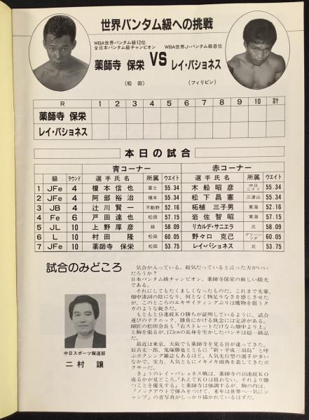 〈ボクシング・プログラム〉バンタム級薬師寺保栄VSレイ・パチョネス
