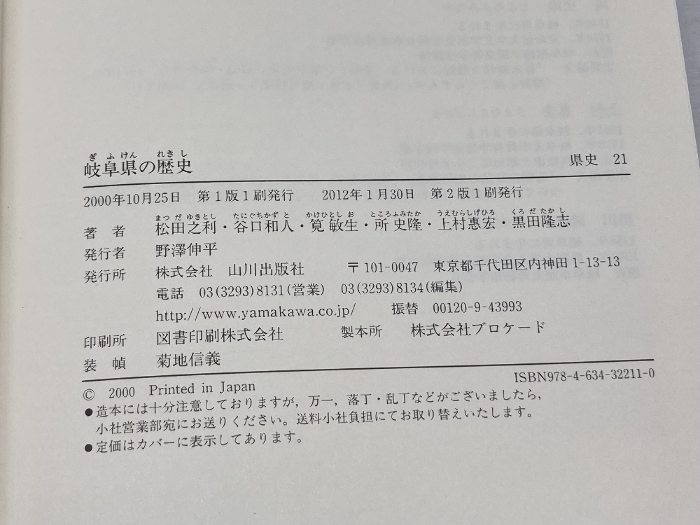 岐阜県の歴史 (県史 21) 山川出版社 松田 之利