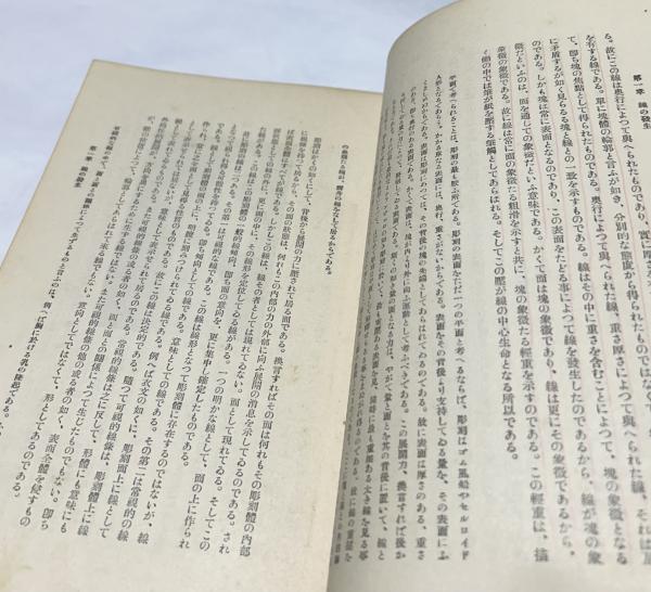 • 解説 再版 本文p1〜p4に赤ライン多数 ヤケシミやや強し 見返し書店ラベル 箱欠、裸本 384頁 線の発生、輪郭線、皺法、線の運動性、線感情、線の絵画的性質、線描法、線の絵画に於ける位置 挿図117点 菊判 昭和3年刊