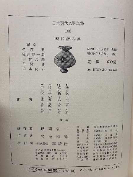日本現代文学全集 第108 (現代詩歌集)